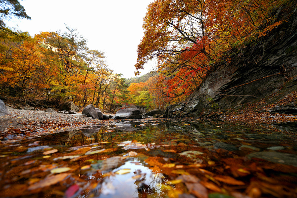 가을 단풍으로 물들은 계곡물