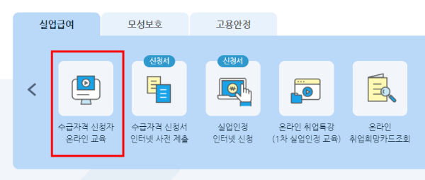 고용보험 홈페이지 - 수급자격 신청자 온라인교육 링크 클릭하시면 고용보험 홈페이지 해당 페이지로 이동 합니다.