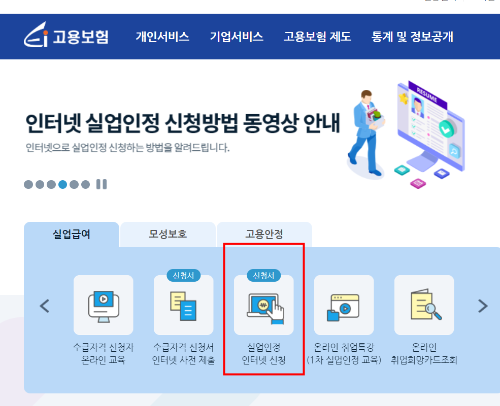고용보험 홈페이지 실업 인정후 온라인 취업특강으로 1차 실업인정 교육도 가능하니