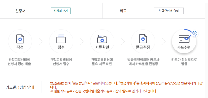서류 확인후 발급 결정 카드 수령으로 이어 집니다.