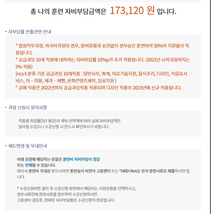 고용노동부 HRD-Net 신청 하시고 수강 하시면 됩니다.