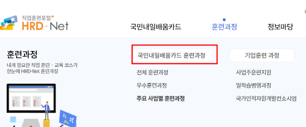 고용노동부 HRD-Net 홈페이지 훈련과정 국민내일배움카드 훈련과정을 선택