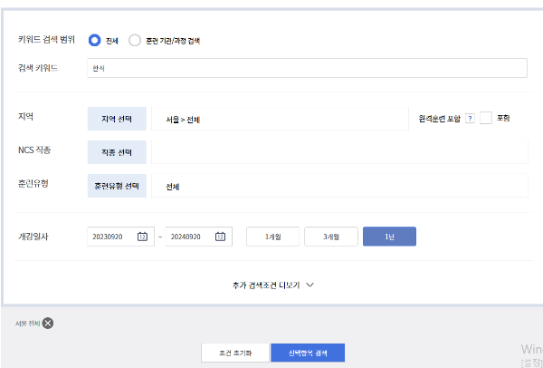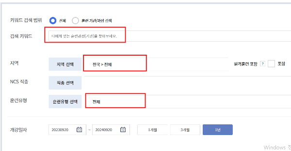 훈련유형은 전체로 해두시고 검색후 확인 해보시면 됩니다.
