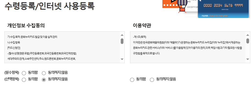 문화누리카드 인터넷 사용 등록 하기