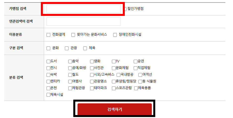 문화누리카드 홈페이지 > 사용하기 > 온라인가맹점 > 가맹점검색 ( 구매하려는 품목 ) > 검색하기