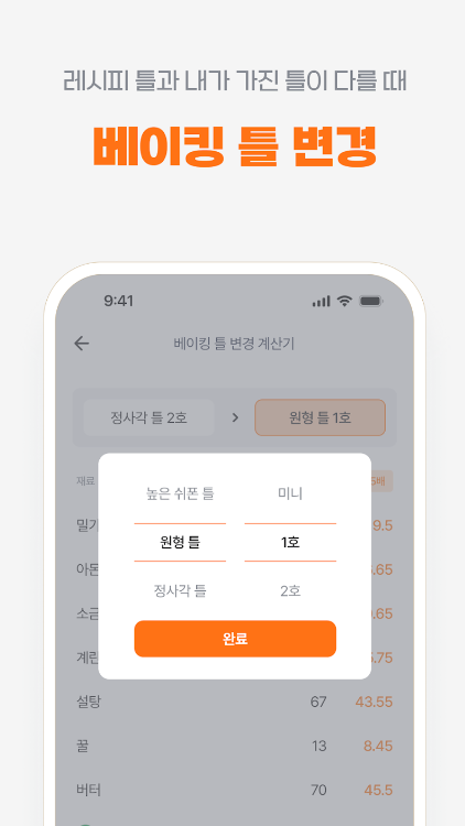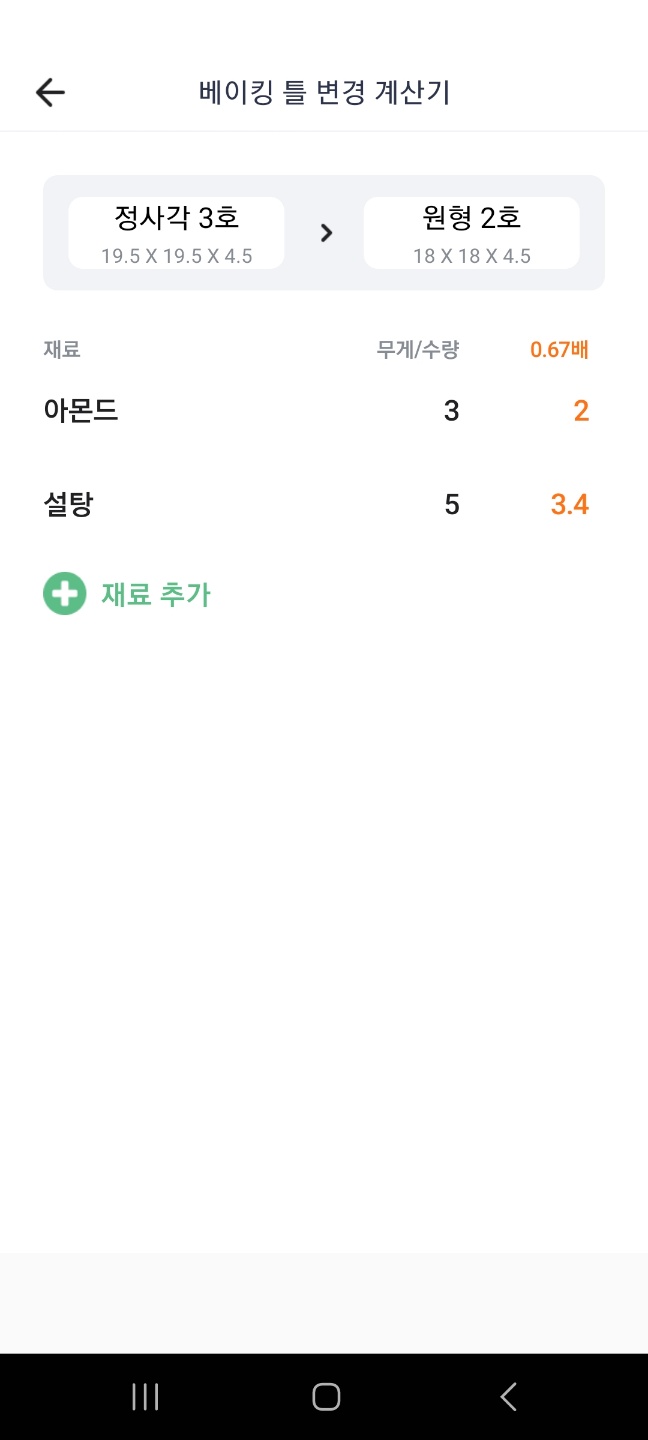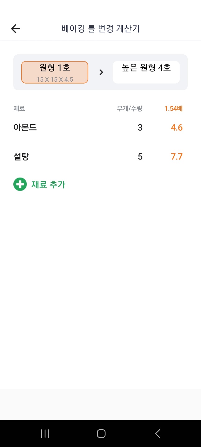 베이킹틀 변경에 적용된 레시피 까지 너무 편리한 베이킹 계산기 입니다.