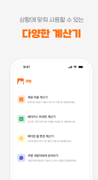 베이킹계산이 손쉽게 쿠빵에서 이용해 보세요