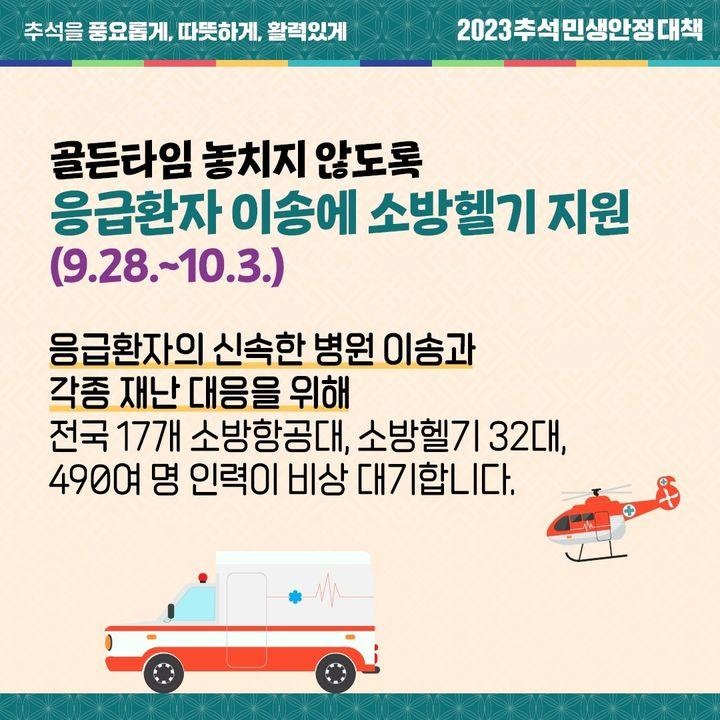 3. 응급환자 소방헬기 지원 기간: 9월28일 ~ 10월 3일 까지