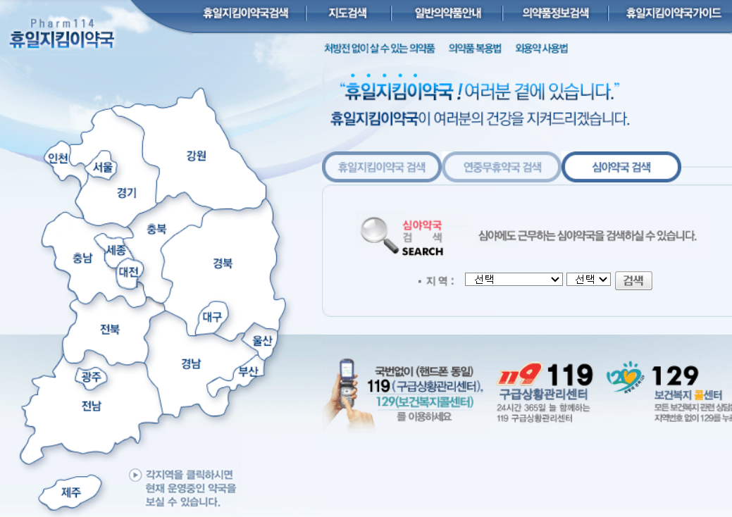 . 휴일 당번 약국 찾기 : 휴일지킴이약국 <<< 클릭하시면 휴일지킴이약국 검색하기로 이동합니다.