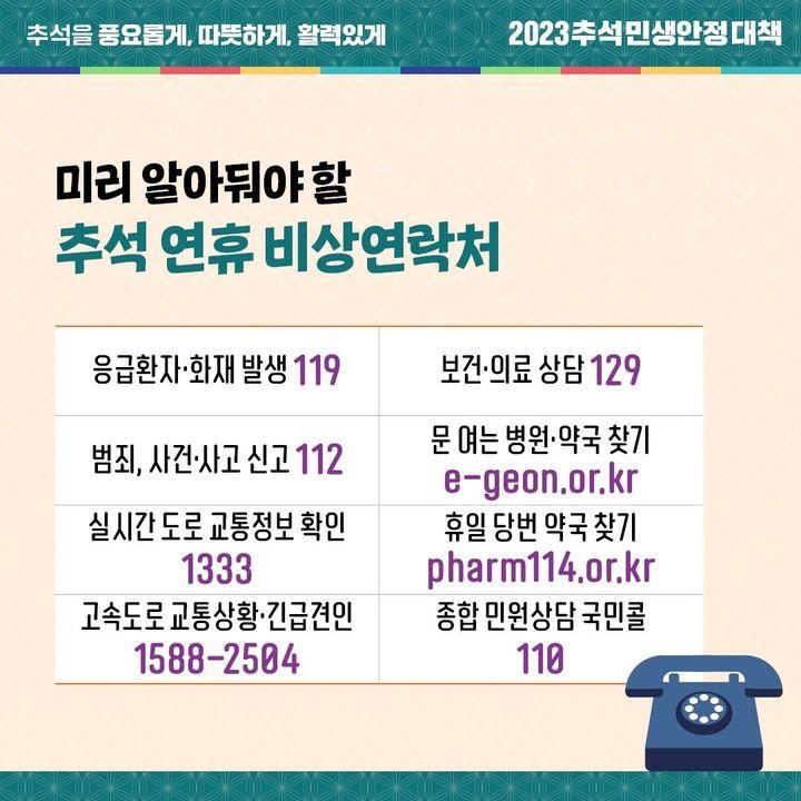 실시간 교통 정보, 미리 알아둬야 할 연휴 비상연락처 문여는 병원. 약국 등 총정리 하여 알려 드리겠습니다.