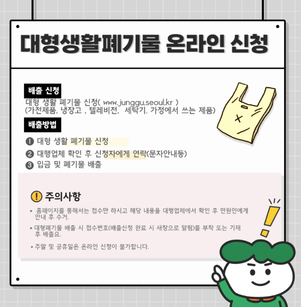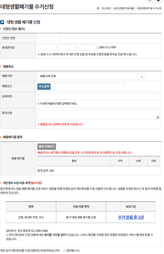 서울 중구 온라인 대형생활폐기물 수거 신청 및 전화 신청 방법