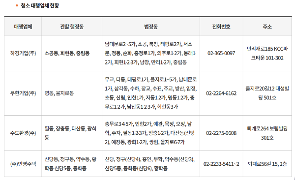 온라인 신청이 힘드신 분들위해 전화신청시 대행업체 관할 행정동 참고 하시라고