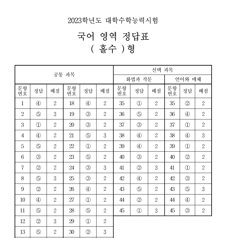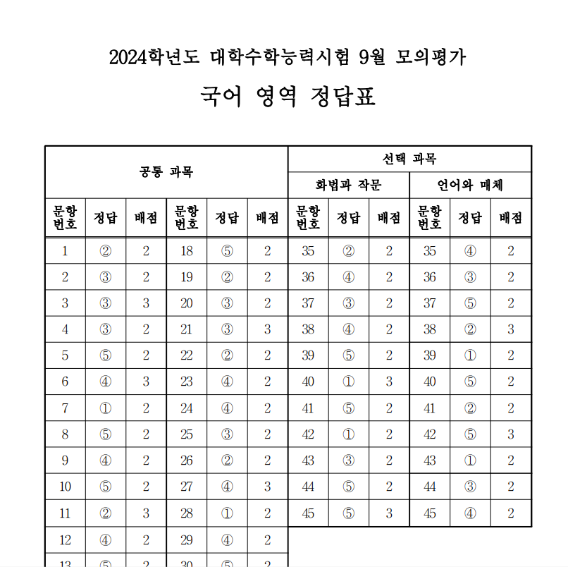 국어 영역을 예시입니다 참고 하시기 바랍니다.