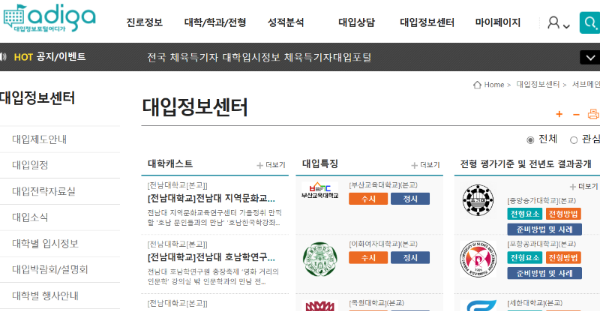 2. 대입정보포털어디가(한국대학교육협의회) www.adiga.kr