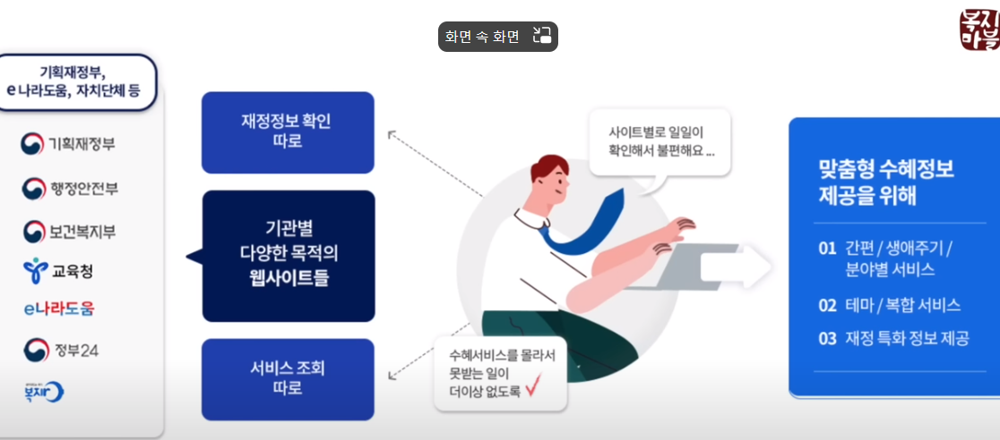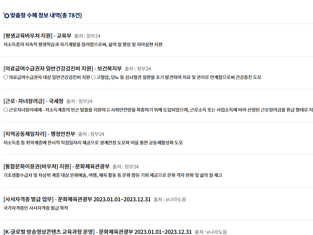 보건복지부, 교육청, 정부24, 복지로등 각부처 별로 수혜정보를 따로 일일이 검색 할필요 없이 한곳에서 해결 할수 있습니다.