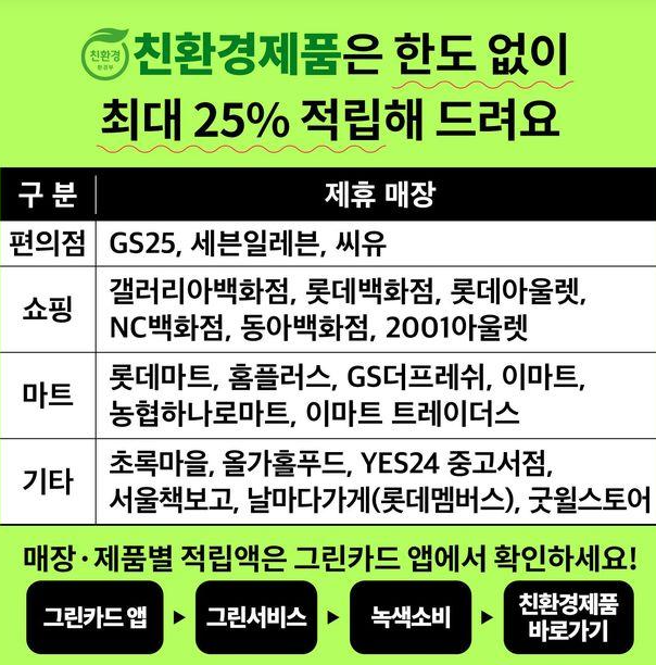 그린매장 친환경 제품 구매시 한도 없이 적립