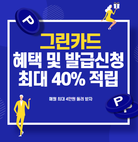 친환경 소비 문화를 확산 위해 만들어진 그린카드 발급신청 후 최대 40% 적립 받아서 월 4만원 돌려 받아 보세요