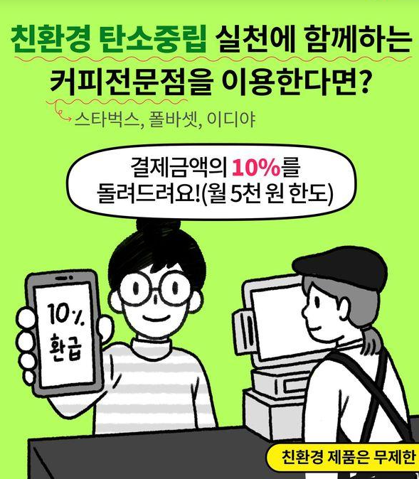 참여 매장은 스타벅스, 폴바셋, 이디아 같이 탄소중립포인트제 참여 하고 있는 매장