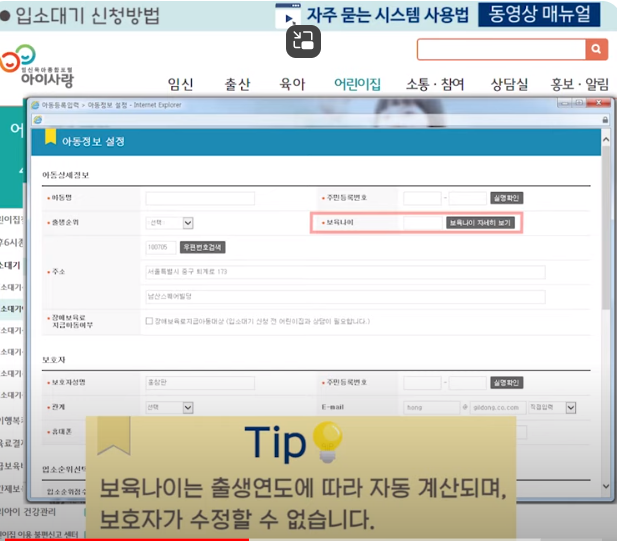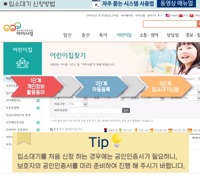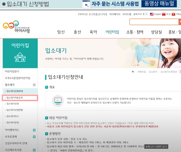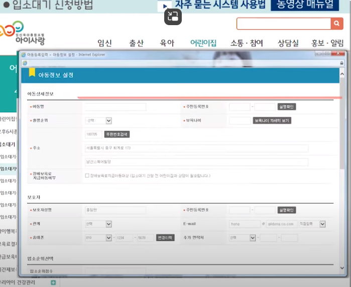 어린이집 입소대기 신청시 아이등록을 하셔야 하는데요