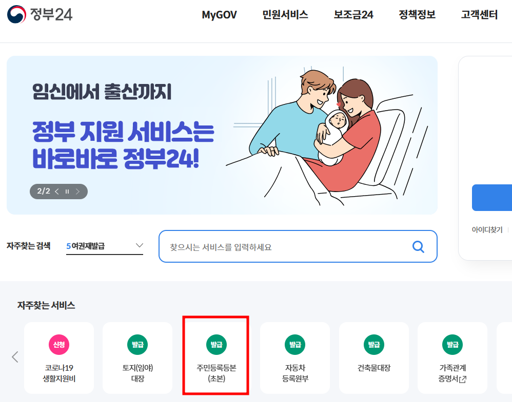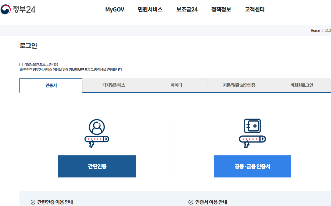정부24시 홈페이지