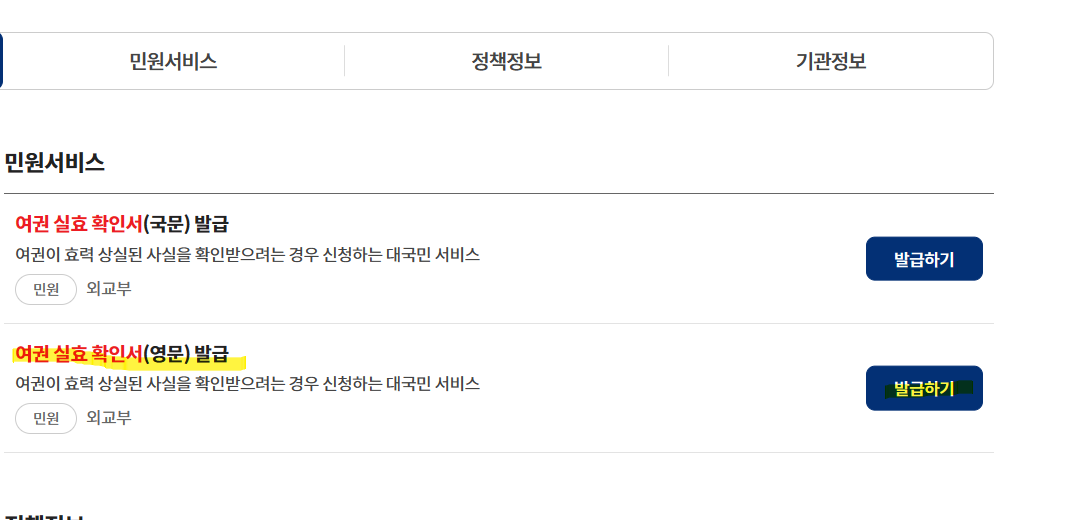 제가 추천드리는 방법은 두번째 방법 여권 실효확인서 (영문) 발급 이방법을 추천 드립니다.