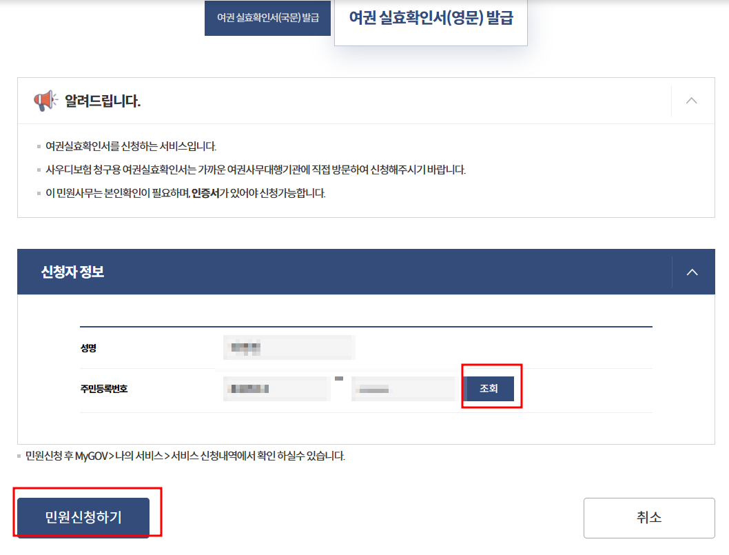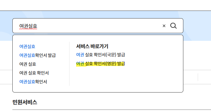 여권 실효 확인서 영문 발급 선택