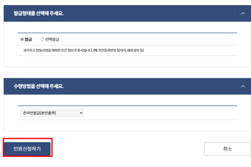 주민등록표 등본(영문) 발급 선택
