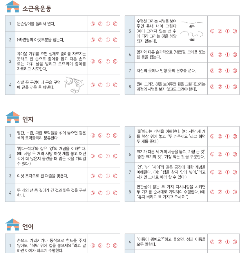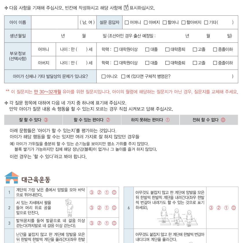 영유아 발달 선별 검사지로 집에서 확인 해 보시는건 어떠실까요?