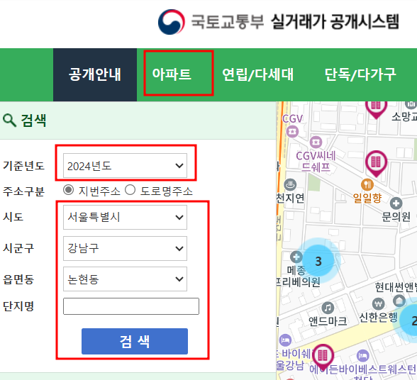 우리나가 부동산시거래는 모든것이 조회 되는 국토교통부 입니다.