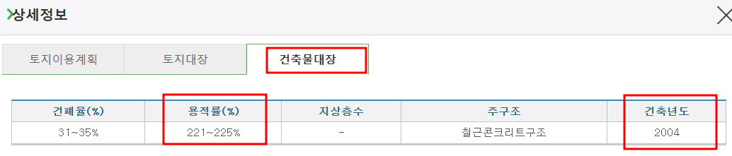 아파트 실거래 내역 전산공부 클릭하시면 건축물 대장 클릭 건축 년도 확인 됩니다.