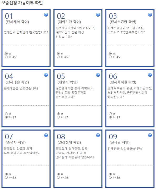 * 주택가액 = 주택가격*담보인정비율 전세권이 설정된 경우 말소 또는 공사로 전세권을 이전할 것 중소기업이 아닌 법인임차인의 경우 전세권을 이전해야 가입가능합니다.