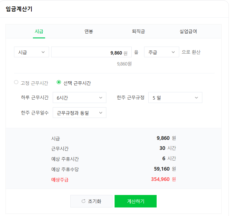 예상 주급 354,960원 됩니다.