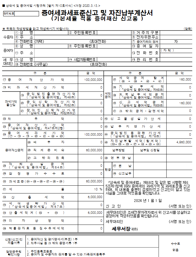 면제 한도액 이하 되는 금액 경우 세금 공제가 되는 증여세 면제 한도액, 증여세 세율, 신고방법 24년 개정 총정리 하였습니다.