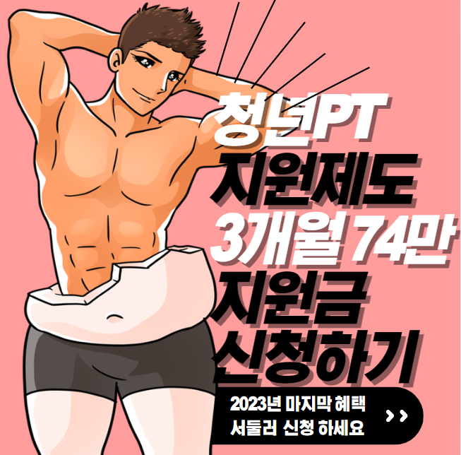 PT를 매월24만원씩 지원받아 3개월 74만원 지원받을수 있으니 서둘러 신청하여 혜택 받으시길 바랍니다.