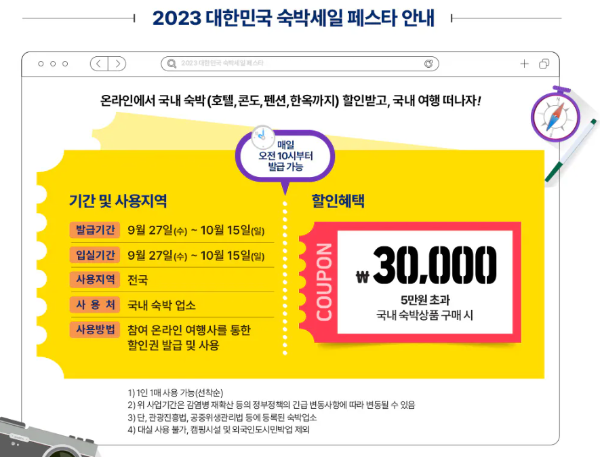 추석여행 숙박 2023년 대한민국 숙박세일 페스타 할인쿠폰으로 혜택을 받아 보세요