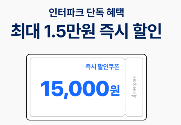 인터파크에서는 단독으로 추가 혜택 최대 15,000원 즉시 할인 쿠폰 중복사용
