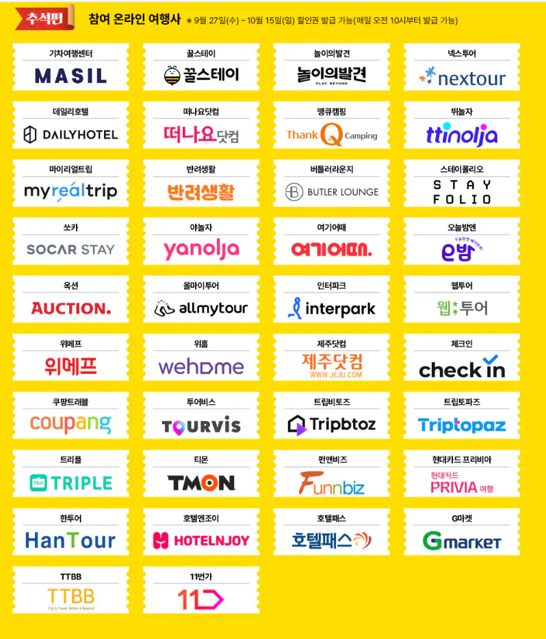 발급기간일에 온라인 숙박 참여 온라인 여행사 접속 (9월 27일 수요일 ~ 10월 15일)