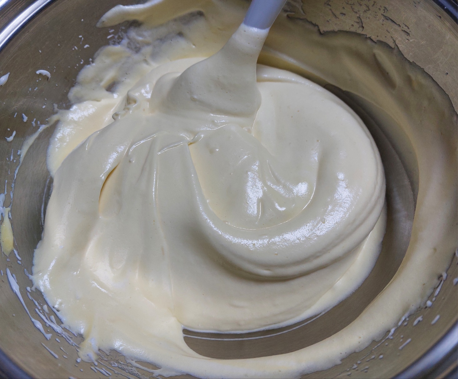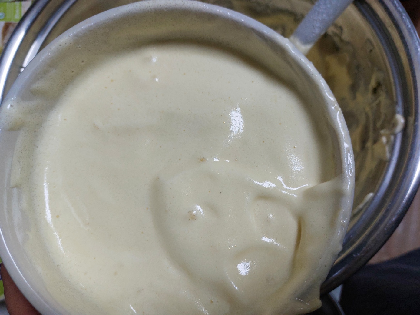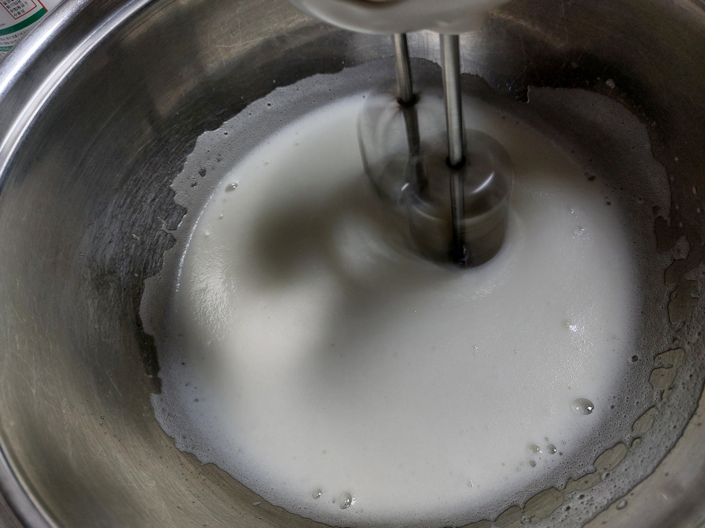 색이 밝은 아이보리색으로 변할때 까지 휘핑해 주세요