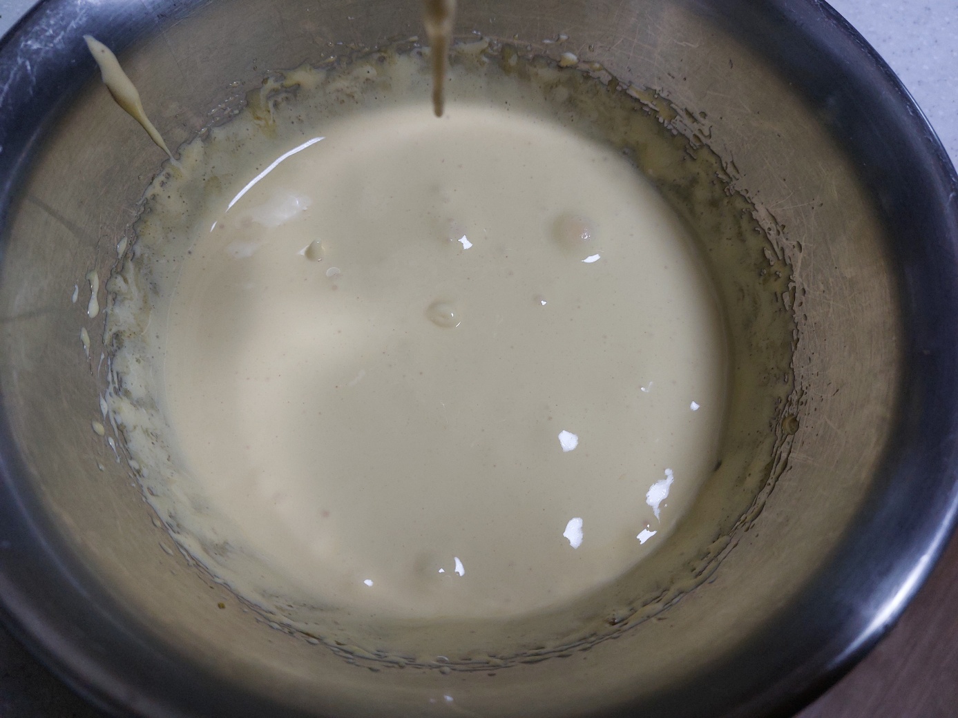 잘섞여진 애벌 반죽을 본반죽에 넣어 섞어 주세요