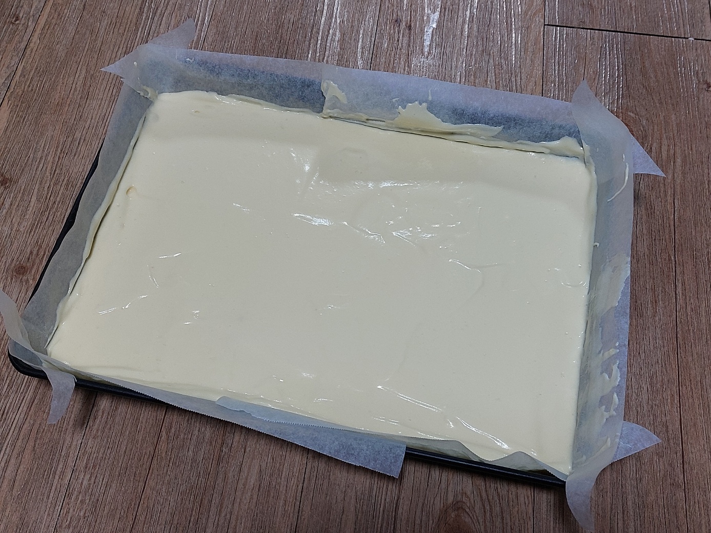 빵팬에 유산지를 제단하여 밀착 시켜 준비 해줍니다.