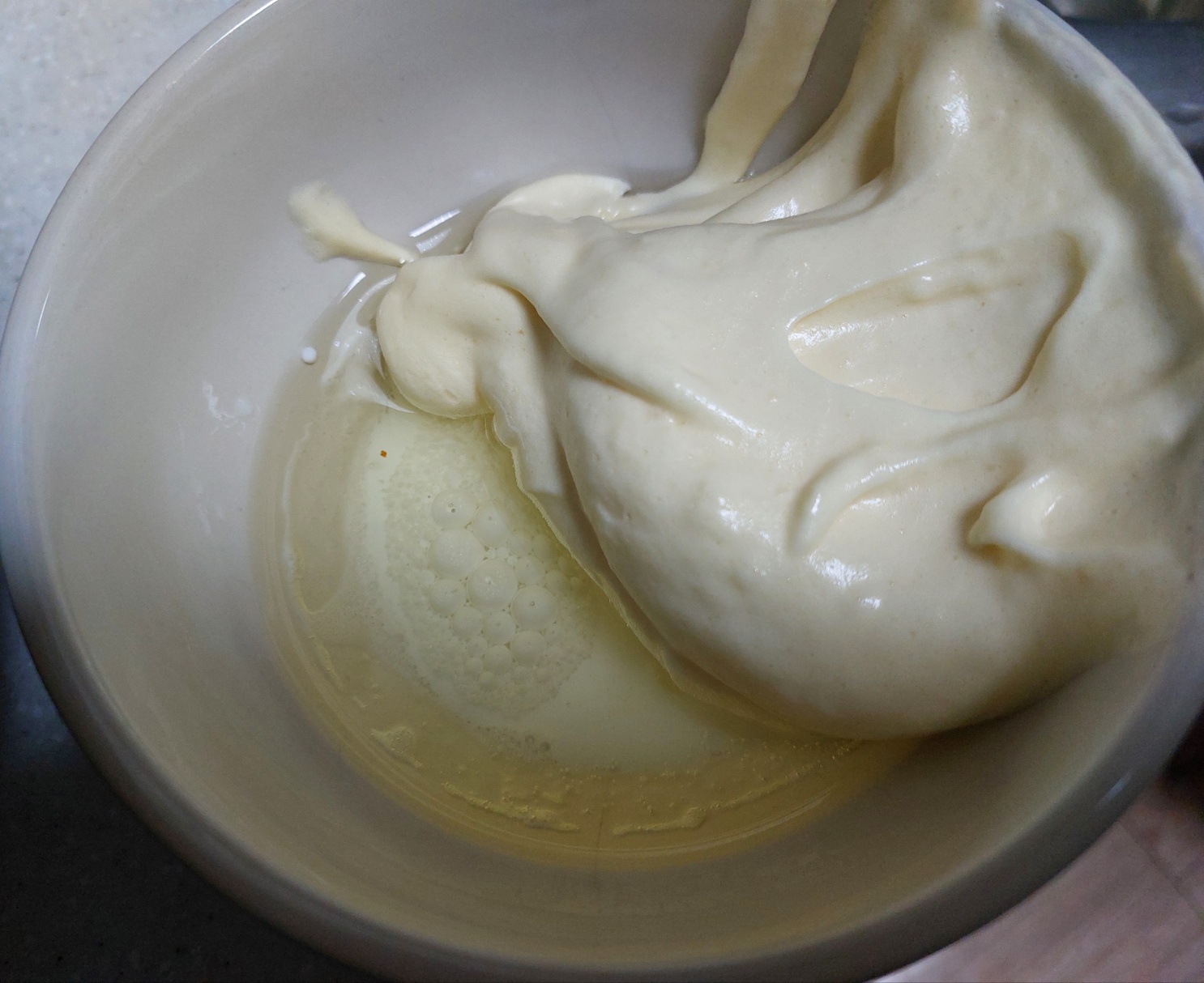 우유와 오일을 한곳에 계량하여 전자렌지에 40도 이상 데워 반죽을 일부 덜어 섞어 주세요